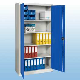 Flügeltürschrank G114 und G114-B. Anlieferung fix und fertig vormontiert auf Einwegpalette. Inklusive 4 Stück höhenverstellbare Stahlfachböden. Der Flügeltürschrank ist mit einem Qualitätsschloß (2... weiter